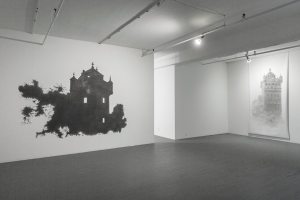 Edge State Installation View September 27, 2014October 3, 2014 | gwenessa Left: Jianming Tower, 2014, graphite on drywall. Photo: Guy L’Heureux